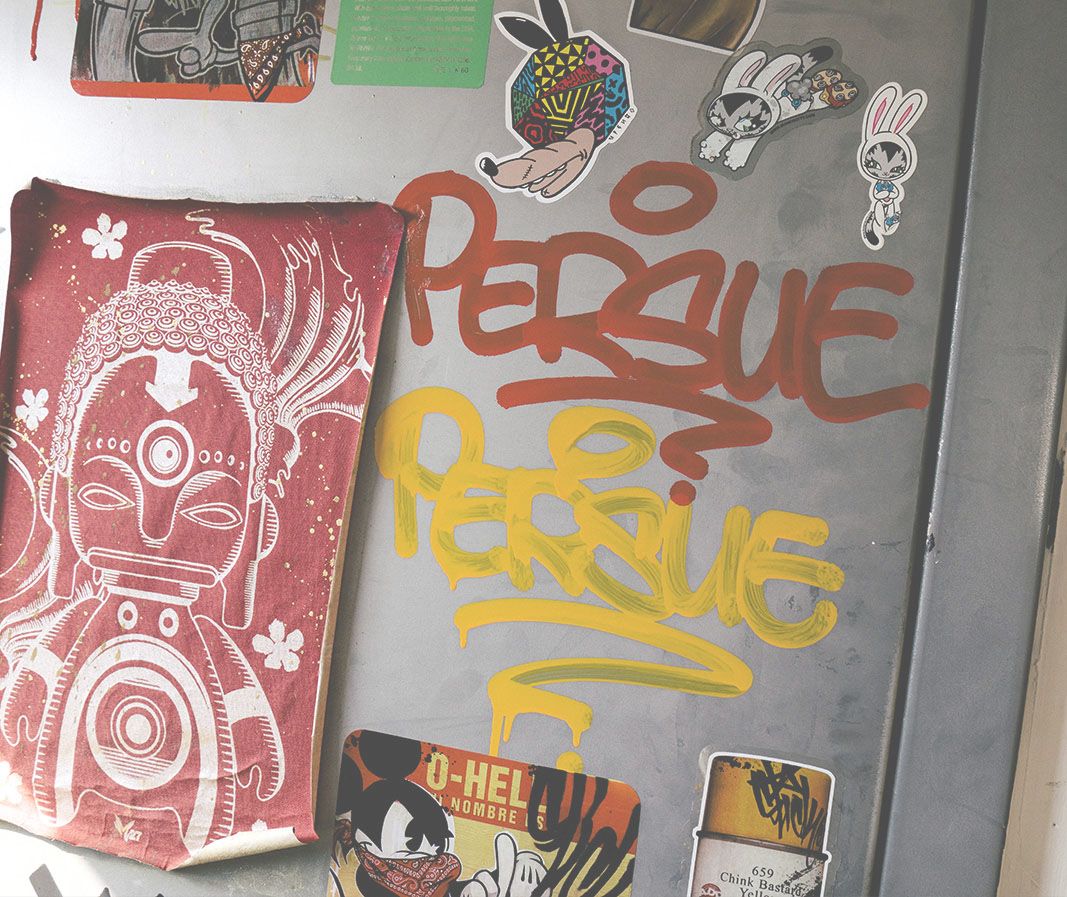 Persue first discovered his penchant for graffiti in the late ‘80s, and was given creative praise by DC Shoes. Damon Way brought Persue onto their company early in his career as an illustrator, and he designed the first logo for DC in the ‘90s. Fast forward to present day, DC Shoes is proud to support this fresh artistic perspective from alumni, Persue, as their brand phrase “Yours For The Taking” encourages the creative expression and unbreakable pursuit at play here.